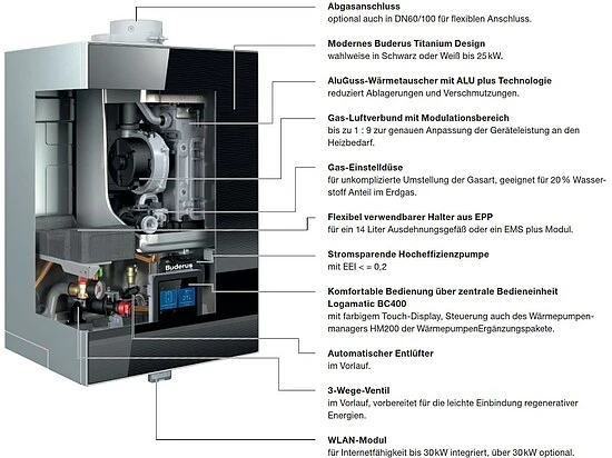 - Korrosionsschutz nach DIN 4753-3 durch Buderus-Thermoglasur DUOCLEAN plus und Magnesium- Anode