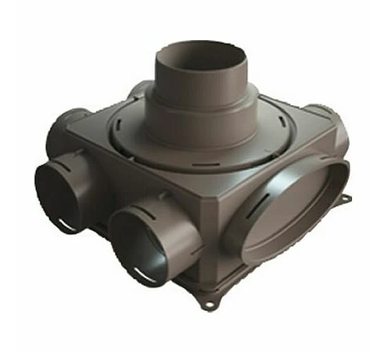 - Buderus Luftverteilkasten (1-lagig) mit vertikalem Anschluss DN100 als Kompaktverteiler für Rund- und Flachkanalsystem mit bis zu 6 Rundrohranschlüssen DN75 oder 6 Flachkanalanschlüssen möglich