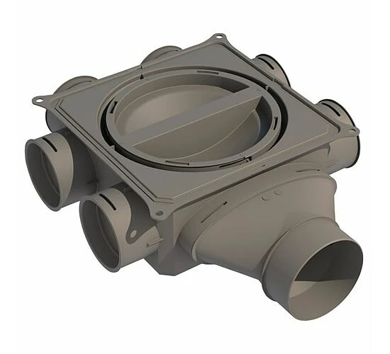 - Buderus Luftverteilkasten (1-lagig) mit seitlichem Anschluss DN125 als Kompaktverteiler für Rund- und Flachkanalsystem mit bis zu 6 Rundrohranschlüssen DN75 oder 6 Flachkanalanschlüssen möglich