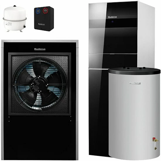 BUDERUS Wärmepumpenpaket Logaplus WLW196i IR-9 mit Luft-Wasser-Wärmepumpe Logatherm WLW196i-11 IR T190 11,7kW/11,11kW (Heiz-/Kühlleistung) reversibel, serperater Pufferspeicher Logalux P200.5 S-B, 1 Heizkreis-Set ungemischt und mit Systemzubehör, bestehend aus: