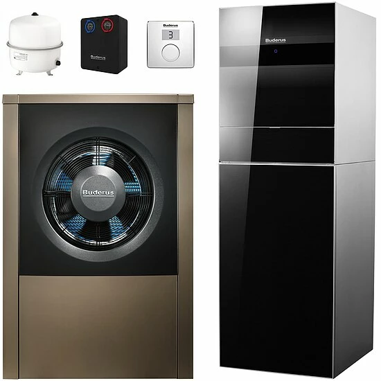 BUDERUS Wärmepumpenpaket Logaplus WLW196 iAR-1 mit Luft-Wasser-Wärmepumpe Logatherm WLW196i-14 AR T190 14,4kW/11,9kW reversibel mit Tower, Bedieneinheit RC100 H, 1 Heizkreis-Set ungemischt, bestehend aus: