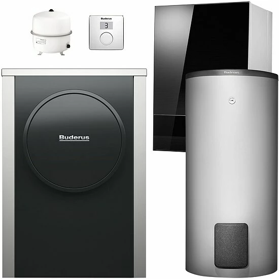 BUDERUS Wärmepumpenpaket Logaplus WLW E2 mit Luft-Wasser-Wärmepumpe Logatherm WLW196i.2-4 AR E S+ 5,5kW/6,2kW (Heiz-/Kühlleistung) reversibel, separaten Warmwasserspeicher Logalux SH290 S-B, Bedieneinheit RC100 H und mit Systemzubehör, bestehend aus: