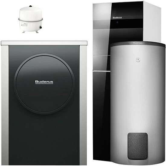 BUDERUS Logaplus Wärmepumpenpaket WLW TP2 mit Logatherm WLW196i.2-4 AR TP120 S+, reversible Luft-Wasser-Wärmepumpe für monoenergetischen Betrieb mit integriertem Pufferspeicher und separatem Warmwasserspeicher Logalux SH290 RS-B, bestehend aus: