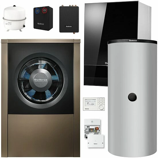 BUDERUS Wärmepumpenpaket Logaplus WLW196i AR-11 mit Luft-Wasser-Wärmepumpe Logatherm WLW196i-6 AR E 6,3kW/6,7kW reversibel, einem separaten Pufferspeicher Logalux PRZ500.6 S-B, Frischwasserstation Logalux FS20/2, Speichermontage-Set, Bedieneinheit SC300 und 1 Heizkreis-Set gemischt, bestehend aus:
