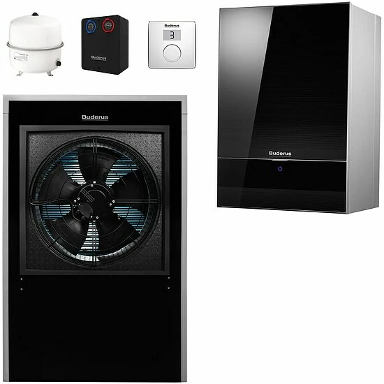 BUDERUS Wärmepumpenpaket Logaplus WLW196i IR-6 S mit Luft-Wasser-Wärmepumpe Logatherm WLW196i-6 IR E 5,7kW/6,7kW (Heiz-/Kühlleistung) reversibel, Bedieneinheit RC100 H, 1 Heizkreis-Set ungemischt und mit Systemzubehör, bestehend aus: