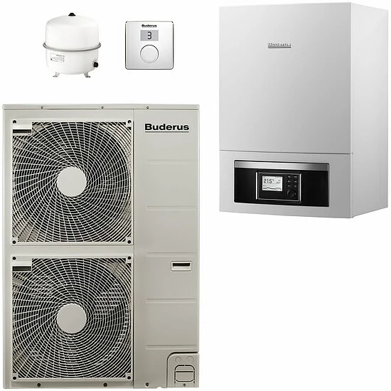 BUDERUS Paket Logaplus WPLS.2-6 S mit Luft-Wasser-Wärmepumpe Split-Ausführung Logatherm WPLS11.2 RB, Bedieneinheit RC100H, 1 Heizkreis-Set ungemischt und mit Zubehör, bestehend aus: