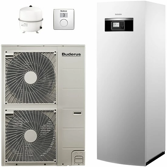 BUDERUS Paket Logaplus WPLS.2-1 mit Luft-Wasser-Wärmepumpe Split-Ausführung Logatherm WPLS11.2 RT, Bedieneinheit RC100H, 1 Heizkreis-Set ungemischt und mit Zubehör, bestehend aus: