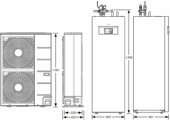 - 1 Stk. Buderus Logatherm WPLS11.2 RT Split-Wärmepumpe 11kW (A2/W35) monoenergetisch mit 190L Speicher – 7739606554