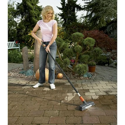 Einfach und wirkungsvoll reinigen mit dem GARDENA Komfort-Schrubber. Er ist mit allen GARDENA Cleansystem Wasserstielen kompatibel.