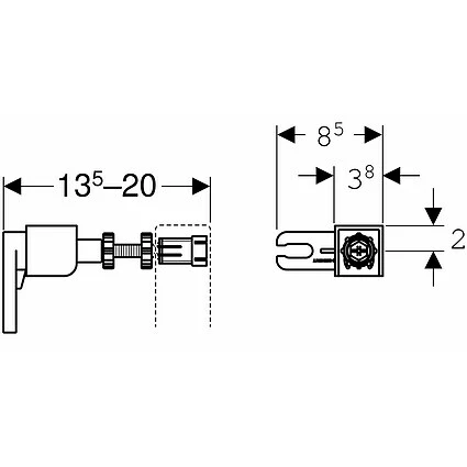 - 2 Wandanschlüsse mit Langloch, Zinkdruckguss