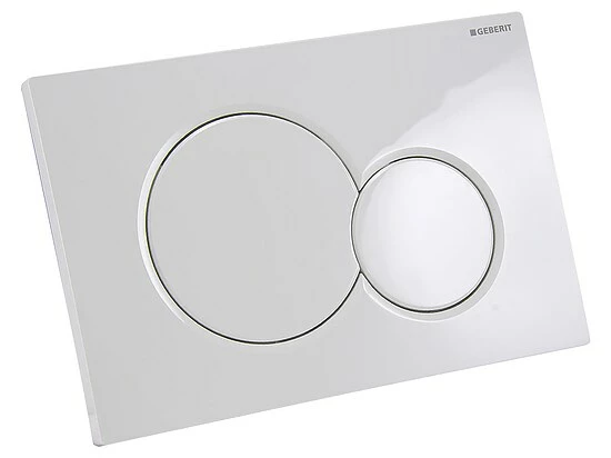 Die Sigma01-Betätigungsplatte (Drückerplatte) gibt es mit Zwei-Mengen-Auslösung für die große und die kleine Spülung.