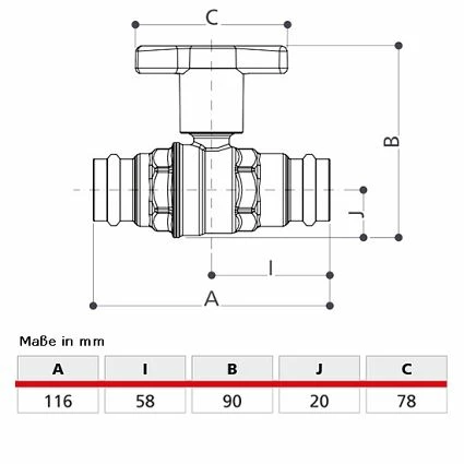 GIACOMINI Solar-Press-Kugelhahn für Kupfer- und Edelstahlrohre – 22 mm x 22 mm – voller Durchgang – max. 180°C – mit verlängertem T-Griff aus schlagfestem Kunststoff – inkl. blauem, rotem und violettem Inlay – (Pressbacke mit Kontur V, M oder SA verwenden!) – Hersteller-Artikel-Nr. R851VY184