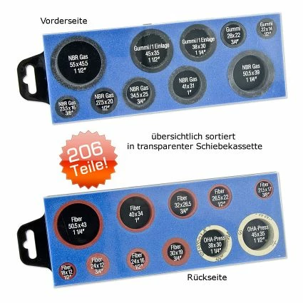 HAAS Universal-Dichtungs-Sortiment Nr. 9000 für Gas- und Wasserinstallation – 206-teilig in praktischer Schiebekassette, transparent, Maße: 247 x 92 x 42 mm.