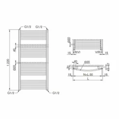 Badheizkörper Buderus Therm Curve Mit Außenanschluss (gebogen) – Höhe 1.220 Mm X Breite 545 Mm