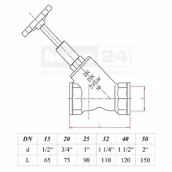Schrägsitzventil, 1 1/2“ IG – DN40 – Mit Steigender Spindel, Fettkammeroberteil Und Entleerung