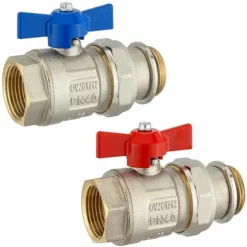 Kugelhahn-Set 1″ IG x 1″ AG – blau und rot