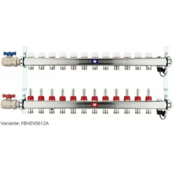 FBH-Verteiler 12-fach Aus Edelstahl Mit Topmeter, Entlüftung, Kugelhähnen Und Spülvorrichtung