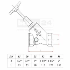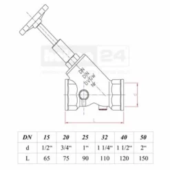 Schrägsitzventil, 1 1/2“ IG – DN40 – Mit Steigender Spindel, Fettkammeroberteil Und Entleerung