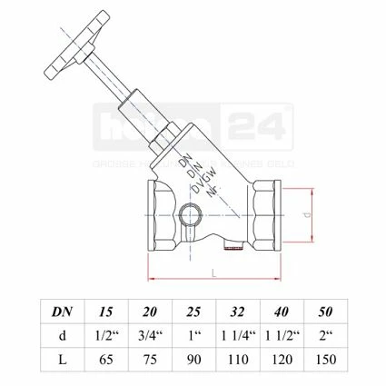 SCHLÖSSER Schrägsitzventil 1 1/4″ IG – DN32 – DIN-DVGW-geprüft – Schallschutz-Zulassung Klasse 1 – mit steigender Spindel, Fettkammeroberteil, Prüfstopfen, Rückflussverhinderer und Entleerung