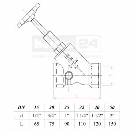 SCHLÖSSER Schrägsitzventil 1″ IG – DN25 – DIN-DVGW-geprüft – Schallschutz-Zulassung Klasse 1 – mit steigender Spindel, Fettkammeroberteil und Entleerung