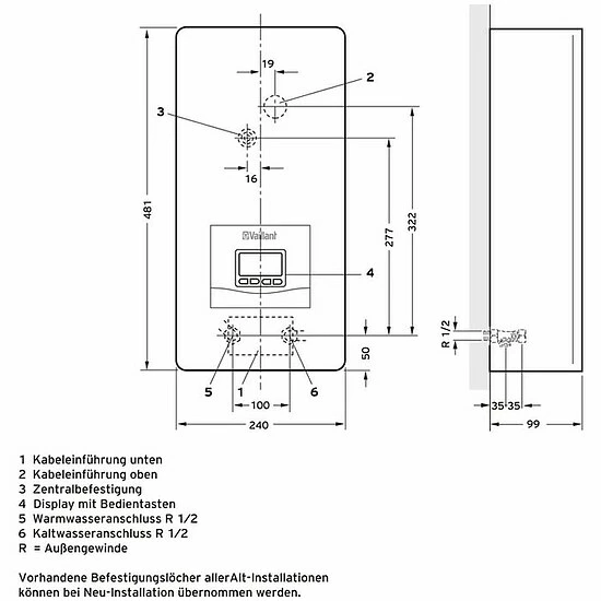Für den Betrieb des Durchlauferhitzers bedarf es eines Drei-Phasen-Wechselstromanschlusses. Vor der Installation muss eine Zustimmung des jeweiligen Netzbetreibers eingeholt werden. Nach der Niederspannungsanschlussverordnung (NAV) dürfen Arbeiten an der elektrischen Anlage hinter der Hausanschlusssicherung nur durch den Netzbetreiber oder durch ein in das Installateurverzeichnis eines Netzbetreibers eingetragenes Installationsunternehmen durchgeführt werden.