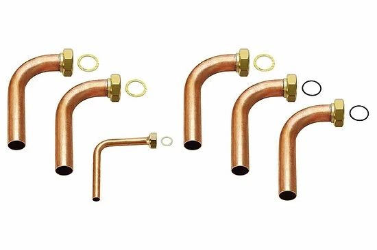 - 5 Stk. Rohr 90° für Heizung und Sole Ø 35 mm mit Überwurfmutter G 1 1/2