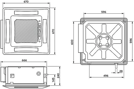 - Produktmaß (Höhe / Breite / Tiefe): 670 / 670 / 240 mm