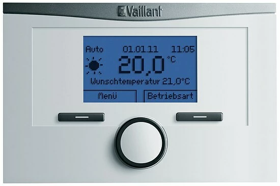 Mit dem calorMATIC 350 steuern Sie Ihr Vaillant Heizgerät zeit- und raumtemperaturgeführt. Durch das intuitiv verständliche Bedienkonzept lässt er sich ohne Vorkenntnisse bedienen. Zwei Auswahltasten und ein zusätzlicher Drehknopf machen alle Einstellungen leicht, und das beleuchtete Klartext-Display ist auch im Dunkeln gut ablesbar. Dank individuell einstellbarer Tages- und Wochenprogramme können Sie die Heizzeiten Ihren individuellen Bedürfnissen anpassen. Die Umschaltungen zwischen Tag- und Nachtbetrieb und die Umstellung von Sommerzeit auf Winterzeit erfolgen automatisch.
