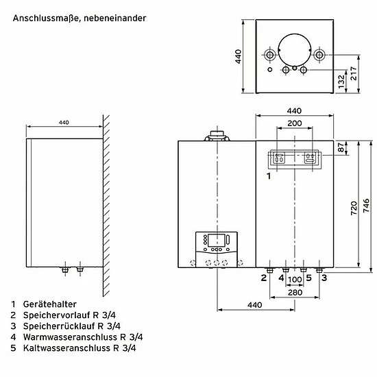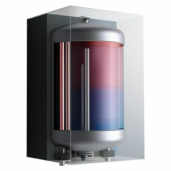 - Wandhängender Warmwasser-Schichtladespeicher zur Montage rechts oder links
