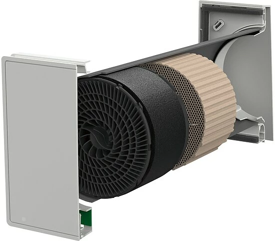 - Gerät wird mit Hilfe einer runden Wandhülse (als Zubehör erhältlich) direkt in der Außenwand ohne Luftverteilsystem installiert und eignet sich so besonders für die Modernisierung