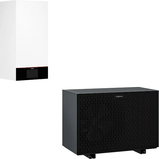 Viessmann Luft-Wasser-Wärmepumpe Monoblock-Ausführung Vitocal 250-A, Typ: AWO-E-AC-AF 251.A10 400V mit integrierter elektrischer Begleitheizung und Wärmepumpenregelung, Außeneinheit in vitographite und Inneneinheit in vitopearlwhite