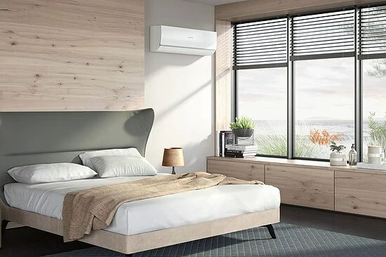 Modulierende Luft-/Luft-Wärmepumpe zur Kühlung, Heizung, Entfeuchtung und Luftfilterung. Inneneinheit zur Wandinstallation.