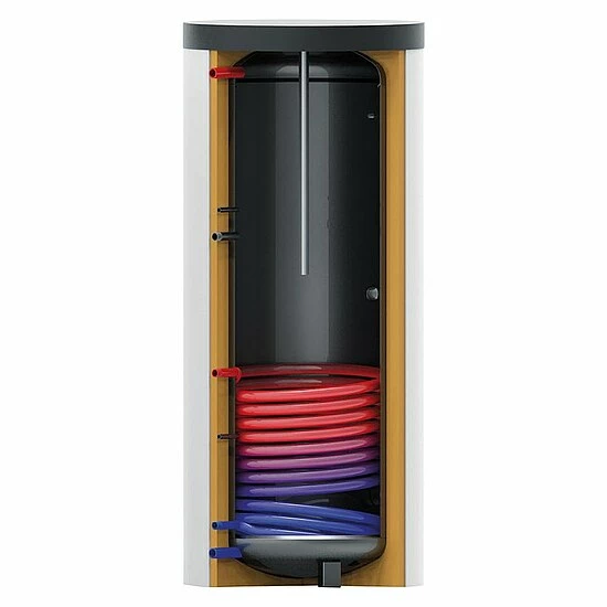 Indirekt beheizter Warmwasser-Standspeicher mit einem Wärmetauscher.