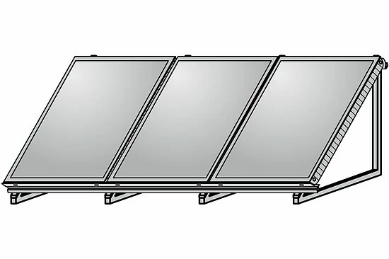 Zur Montage der Kollektoren auf waagerechter Fläche (flexibel einstellbar 20°, 30°, 45°) oder Wandmontage.