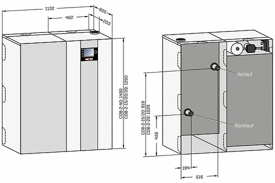 - Direkt an der Wand aufstellbar, spart dadurch viel Platz im Heizraum