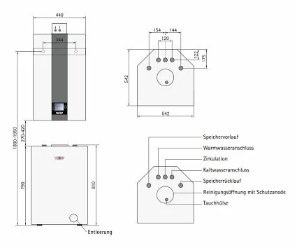 - Max. zul. Speicherwassertemperatur: 95 °C
