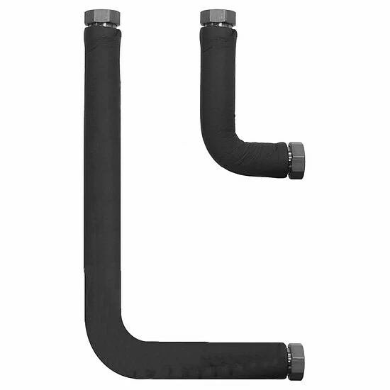 - 2 Rohrleitungen wärmegedämmt, Rohrenden flachdichtend mit 1 1/2″ Überwurfmuttern inkl. Dichtungen